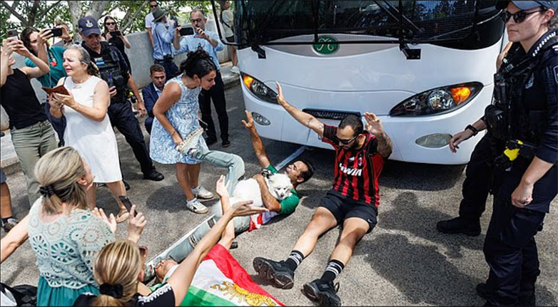 Χαοτικές σκηνές, διαδραματίστηκαν όταν μια Ιρανή ποδοσφαιρίστρια με δάκρυα στα μάτια φαίνεται να σέρνεται μέσα σε ένα λεωφορείο καθώς διαδηλωτές στην Αυστραλία προσπαθούν να εμποδίσουν την γυναικεία ομάδα να αναγκαστεί να επιστρέψει στην πατρίδα της.