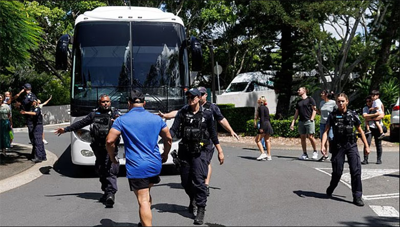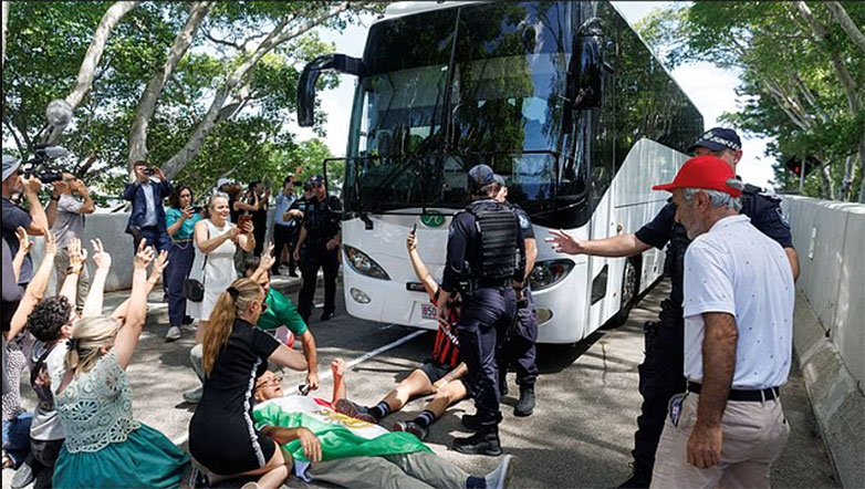 Σε κάποιο σημείο, ένας άνδρας κάθισε ακριβώς μπροστά από το λεωφορείο σε μια προσπάθεια να το εμποδίσει να αναχωρήσει, αναγκάζοντας τους αστυνομικούς του Κουίνσλαντ να παρέμβουν και να τον απομακρύνουν.