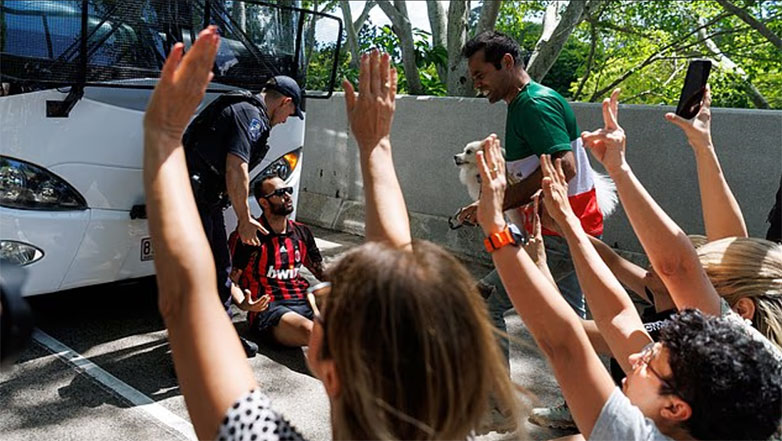 Εκατοντάδες υποστηρικτές περικύκλωσαν το λεωφορείο της ιρανικής ομάδας φωνάζοντας «σώστε τα κορίτσια μας»