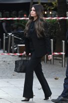 Φορούσε μαύρα από την κορυφή μέχρι τα νύχια, με ένα κοστούμι που ταιριάζει άψογα στη σιλουέτα της και ένα πουκάμισο που δένει στο λαιμό. Ολοκλήρωσε το look της φορώντας μια τσάντα γνωστού οίκο μόδας και ψηλοτάκουνες γόβες, χωρίς να έχει πρόσθετα αξεσουάρ.