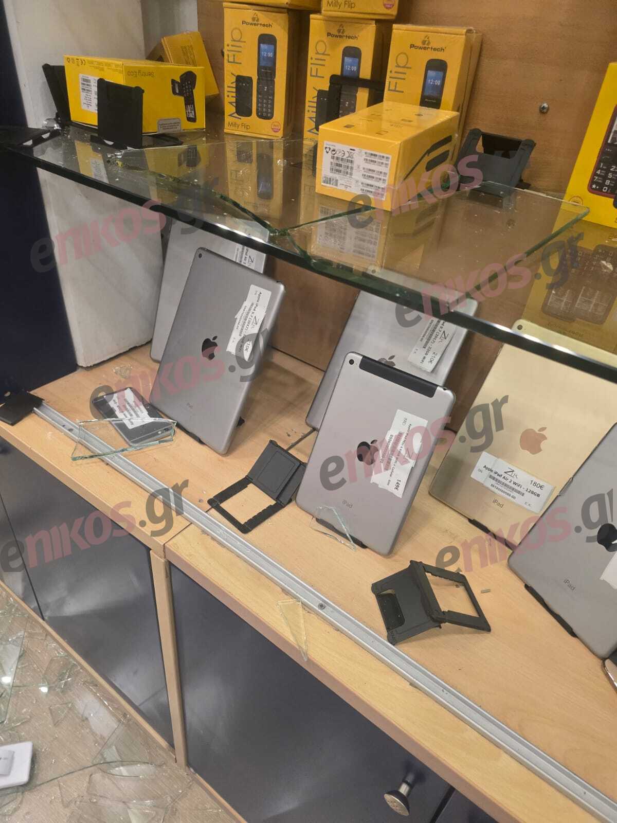 Μπήκαν σέρνοντας στο εσωτερικό, έσπασαν και εκεί τις τζαμαρίες, αφαίρεσαν κινητά τηλέφωνα πολύ μεγάλης αξίας. Τα κινητά φυσικά είναι με τα IMEI πού θα δηλωθούν και θα κλειδωθούν.